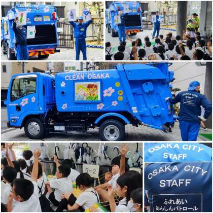 今日は大阪市環境局の方にきていただき、環境局の職員の方から、ごみ減量・リサイクルについて教えていただきました。