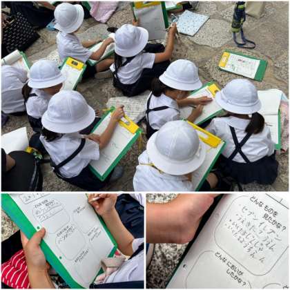 普段気が付かなかったことに気づいたり、何気なく見ていたものに改めて注意を向けたり、どんなものが校区内にあるかを探していきました。