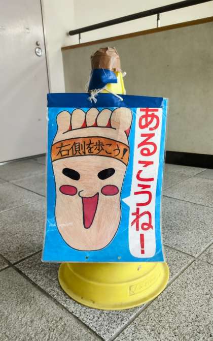 2015年度に誕生したこのキャラクターは、生魂っ子が廊下や階段を走ってけがをするのを防ぐためにつくられました。
