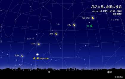 6月19日から6月23日にかけて、月が土星、金星へと近づく様子が見られます。