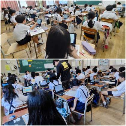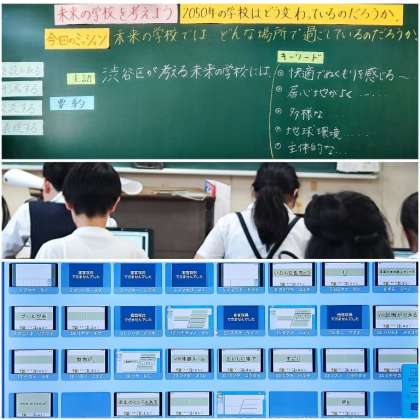 5年生は、総合的読解力育成カリキュラム「未来の学校を考えよう」の学習で、2050年の学校はどう変わっているだろうかを考えています。