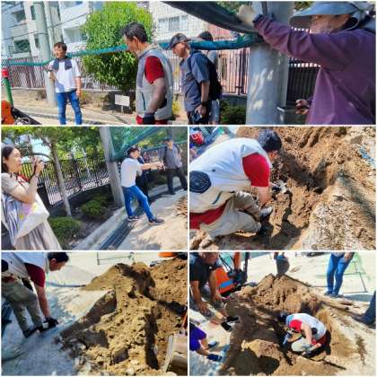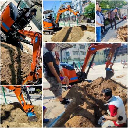 先日から20年前に埋めたタイムカプセルの場所を確認していましたが、今日は地域の方のご協力を得て、「ユンボ」で実際に掘って存在を確認しました。