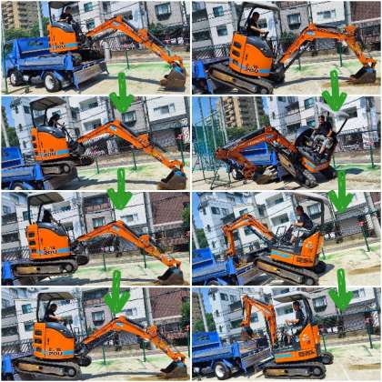 3枚目の写真は、「ユンボ」がトラックから降りる様子です。見事な運転テクニックでした。
