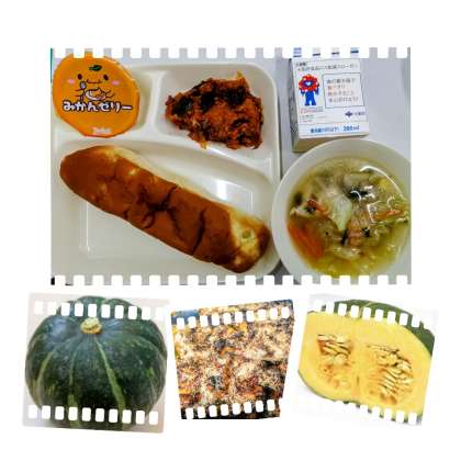 給食では、日本でよく食べられている西洋かぼちゃを、ミートグラタンや夏野菜のカレーライス、焼きかぼちゃのあまみつかけ、などに使っています。