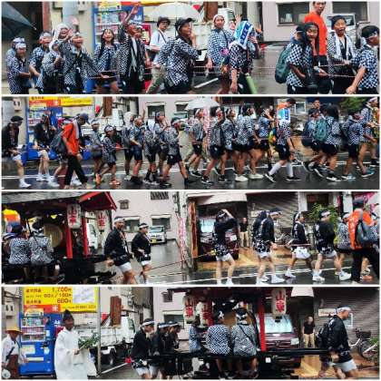ハルカスをバックに太鼓や笛の音が聞えてきます