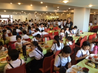海洋センターでの最後の昼食です。これまで病気やけがもなく元気に過ごしてきました。しっかり食べて元気に帰ってきてください。