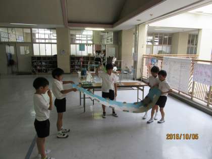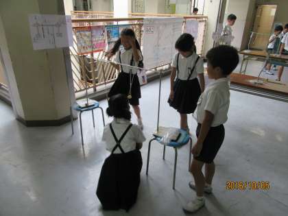 「生魂小学校の子ども達を科学好きにしよう!」をテーマに、5年生が改良に改良を重ね完成させた“ふりこのおもちゃ”が今週公開されました。自分が考えたおもちゃで楽しそうに遊ぶ友だちの様子を見て、「第二弾をやりたい!」と意欲をみせる5年生でした。プロジェクト大成功!