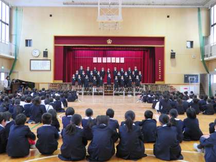 ◇たてわり班メンバーからのメッセージカードを、1年生が渡しました。