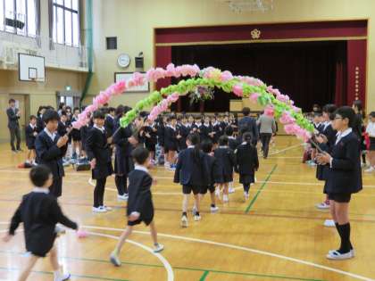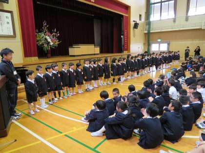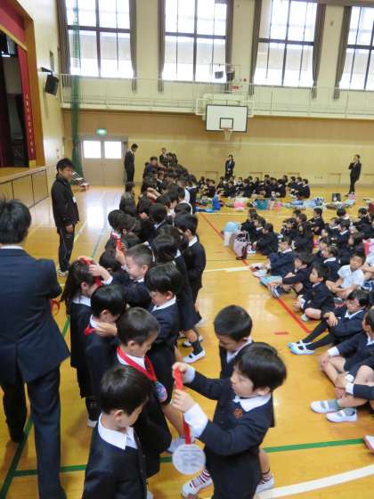 お兄さん、お姉さんの手拍子の中、はずかしそうに入場してきた1年生。