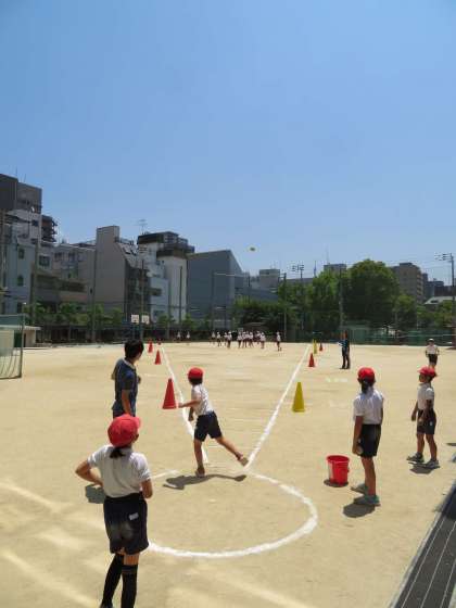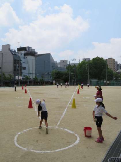 今日は全学年、ソフトボール投げを実施しました。(写真は、3・4年生)