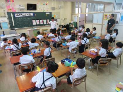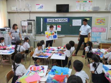 これまで様々な学習の場面で「忍者修行」に励んできた1年生。今回は、図画工作の時間に忍者から手紙とお花紙が送られてきました。さあ、このお花紙をちぎったり、ねじったり、丸めたり変身させながらイメージをふくらませ、絵に仕上げていきます。作品は、11月の作品展で披露します。お楽しみに。