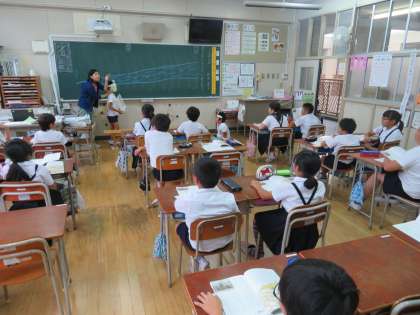 昔から教科書に載っている「ごんぎつね」。記憶に残っている物語だという保護者の方も多いのではないでしょうか。今日、4年生の教室では、登場人物の気持ちをとらえるための手立てとして、物語を劇化しながら読み進めていました。