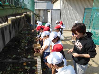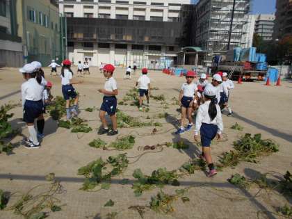 子どもたちが「筋肉ムキムキの腕みたい」と言ってしまうほど、大きくて立派なさつまいもが採れました。