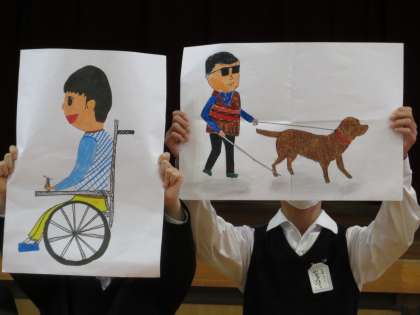 明日28日から3日間、「赤い羽根共同募金」の募金活動を行います。そこで、児童朝会時に、代表委員から赤い羽根募金の歴史や使われ方などについて説明がありました。本日、赤い羽根と募金袋を配布しております。ご協力をよろしくお願いいたします。