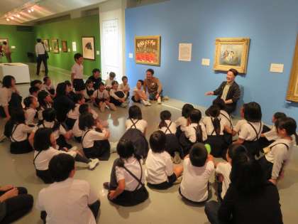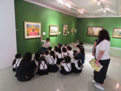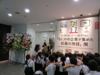 本日、3年生は、「なにわの企業が集めた絵画の物語展」の見学に行きました。2つのグループに分かれて、それぞれの作品について芸術大学の学生と共にギャラリートークをしました。美術館は静かに鑑賞する場ですが、今回は、思ったことを自由に意見交流できる機会をいただきました。