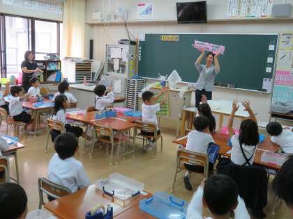 子どもたちは、ポリ袋やかさ袋に息を吹き込みながら、ふくらんでいく様子や音などから想像を広げ、楽しく活動していました。