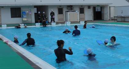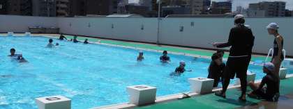 7月29日に開催される大阪市児童水泳記録会に参加する児童も練習に加わり活気にあふれていました。