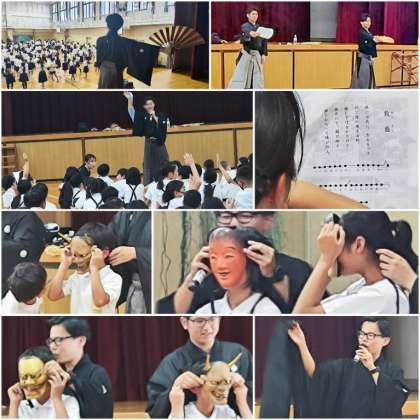 「能楽」は、日本の第一回のユネスコ世界無形文化遺産に登録されており、本校では21年前から毎年能楽にかかる取り組みをしています。