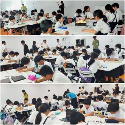 音楽の学習を「未来型教室」で、VRなどの未来の学習方法で勉強しました。