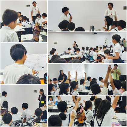 総合的読解力育成カリキュラム「未来の学校を考えよう」の学習に関連して、感じた様々な感想をワークに記入して自分の考えをまとめたり、発表を通じて互いの考えを確認し合うことで、今日の学びをまとめていきました。