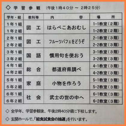 ◆給食試食会の希望者が、定員の20名を超える場合は、玄関ホールで抽選を行います。