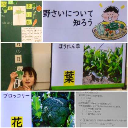 今日は「野菜」と言っても、花の部分であったり、茎の部分であったり、葉っぱの部分であったり、根っこの部分であったりと、いろいろな部分を食べている「野菜」があることを勉強しました。