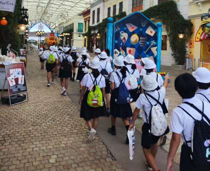 スペイン村を満喫した6年生を乗せて、バスは今日の宿泊地、鳥羽ビューホテル花真珠に向かって再度出発です。