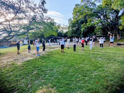 ラジオ体操で、身体も目覚めます。