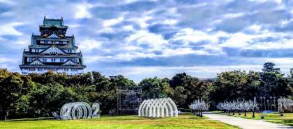 大阪城公園は、冬のイルミネーションの準備をしています。