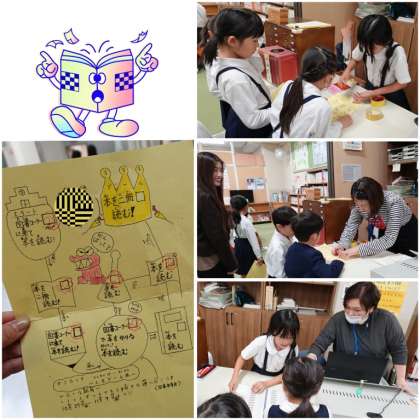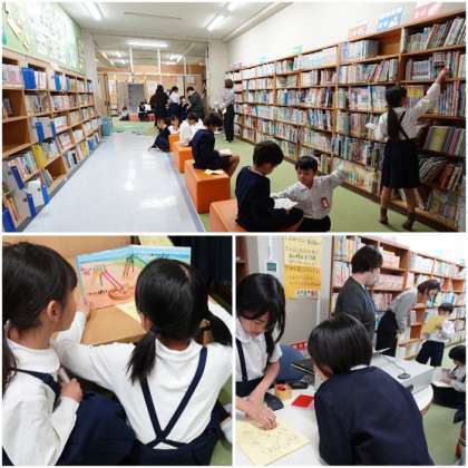 読書週間の取組で、昼休みに図書館ボランティア「ひまわり」さんが児童を見守ってくださっています。