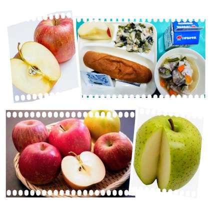 「りんご」は、冬の寒さがきびしい地方で良く育つ果物です。生で食べるほかに、缶づめやジャムなどに加工するものもあります。