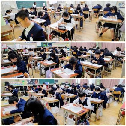 どの教室でもこれまでの学習の成果を発揮しようと、真剣に問題に向き合う姿が見られました。よく聴いて、よく考え、最後までよく頑張りました!
