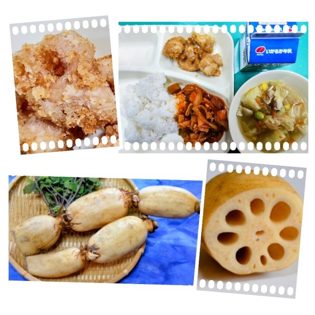 「れんこん」には、かぜを防ぐビタミンCや、おなかの調子を整える食物せんいなどが多くふくまれています。