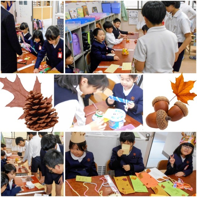6年生も1年生が作った秋のおもちゃで、仲良く遊んでいました。