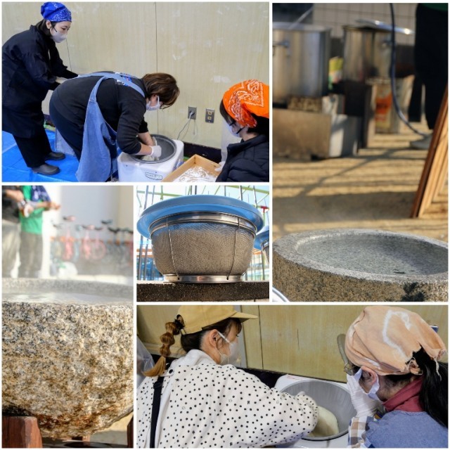 本校の管理作業員も、杵に研磨をかけ、餅つきがスムーズに進むように作業をしてくれました。