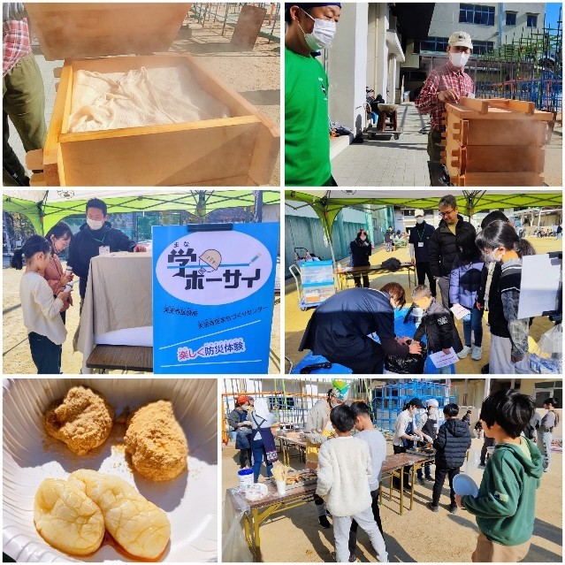 今年は、「もちつきふれあい交流会」の会場に防災体験のブースができました。