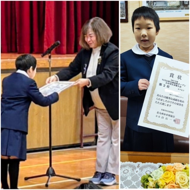 卓球をがんばっている本校の1年生が「VICTAS杯 九州近県オープン 小中学生卓球大会 カブ(小学4年生の部)女子 において、みごと第2位を受賞しました。