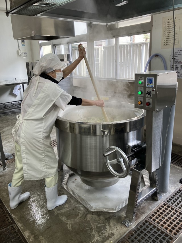 新しく入った釜は、釜の外に熱が伝わりにくくなっているため、近づいても以前に比べて熱さを感じず、調理員さんの仕事の負担が少し軽減されました。火曜日からもおいしいメニューがたくさん用意されています。