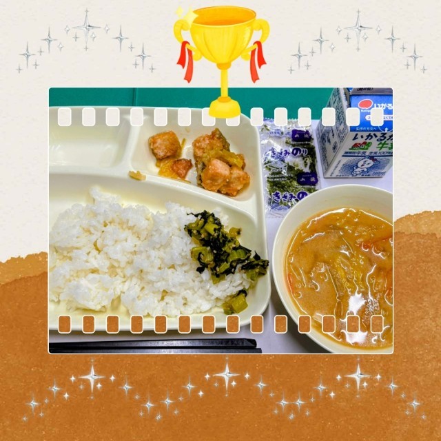 ごはんがおいしく食べられて、いろどりのよい献立を中本小学校の皆さんが考えました。
