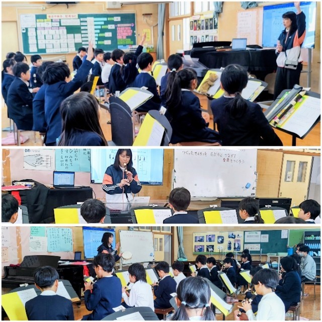 本日の3限目は、音楽室で、チェコスロバキア民謡「雪のおどり」をモチーフに「伴奏に合わせて旋律を創ろう」の授業公開をしました。