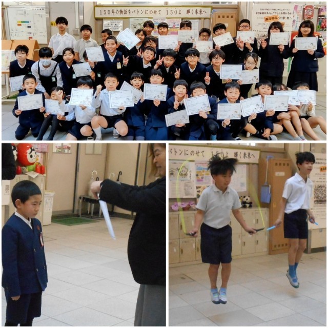 1月13日から2週間にわたって行った耐寒運動で、耐寒なわとびカードや耐寒マラソンカードを達成した50名の表彰を行いました。