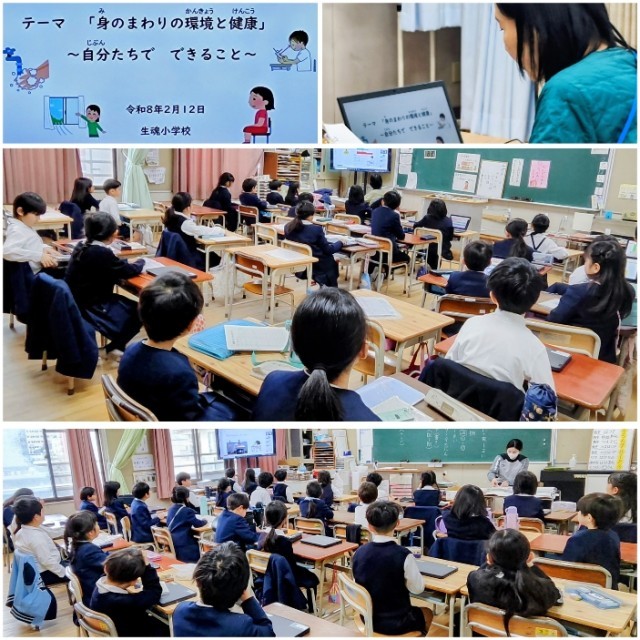 2月5日に実施した学校保健委員会の内容を校内に広げ深めるために、児童集会の時間を活用して全児童に向けて「身のまわりの環境と健康について ー自分たちで できることー」をリモートで発信しました。