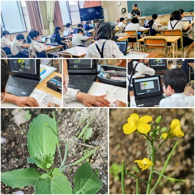 今日は、教室と運動場を往復しながらアブラナの花のつくりについて学習していきました。