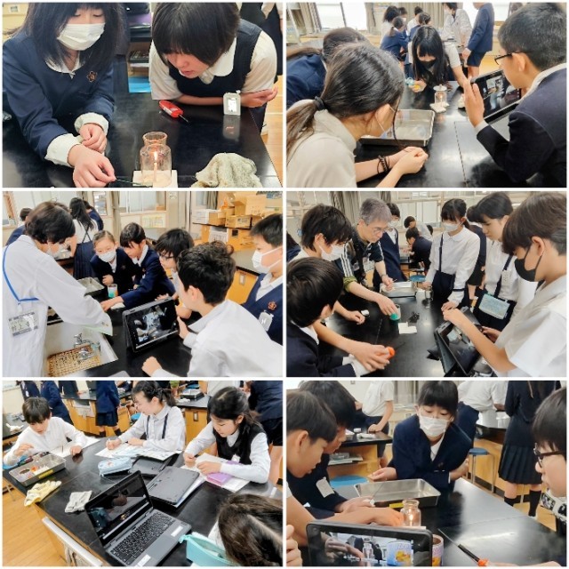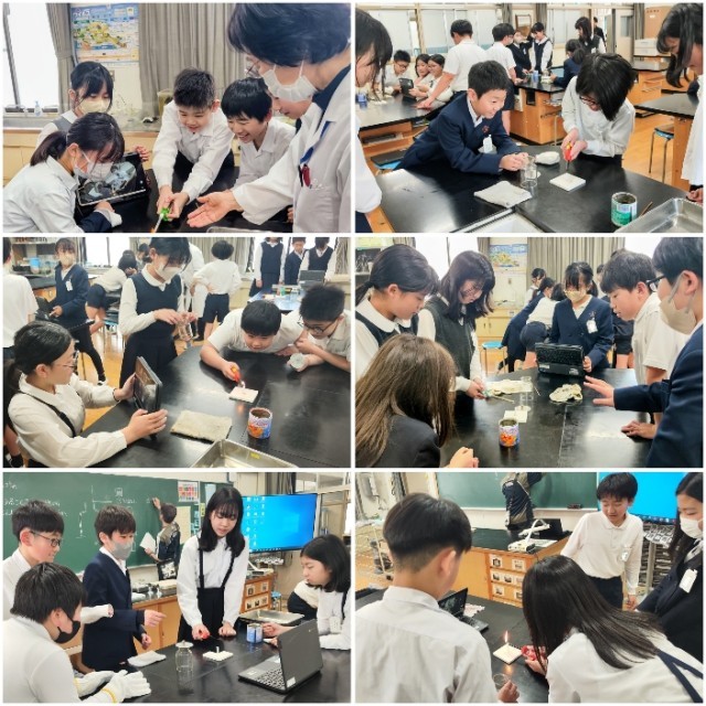今日は6年生になって2回目の理科です。理科補助員の村上先生にも入っていただき、実験を通じて物が燃え続けるために必要な3つの条件を考えていきました。