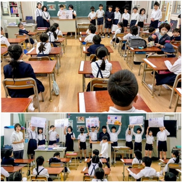 1年生も、6年生が作成した紙芝居を見ながら、一生懸命にお姉さんお兄さんのお話を聴いていました。