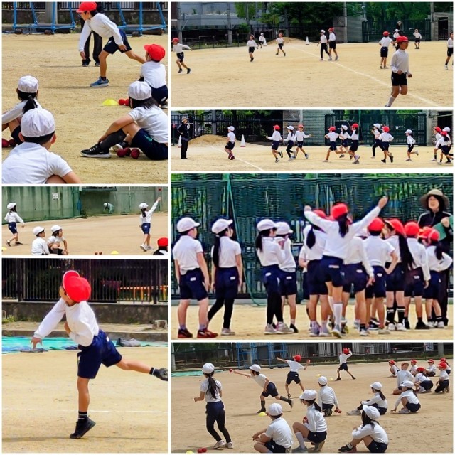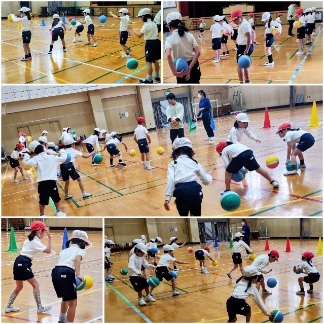1組・・・整列の練習をした後、スポーツテストのソフトボール投げの練習