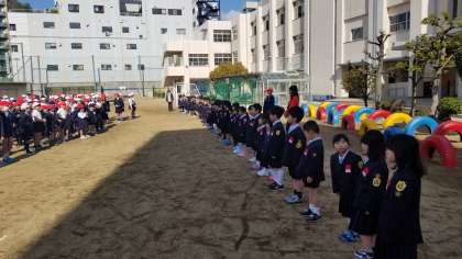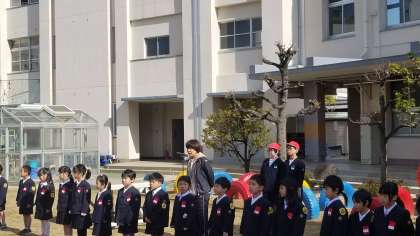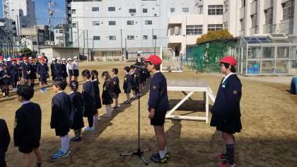 迎える会は6年生の児童代表が進行をしました。校長先生のお話、児童代表の迎えることばがありました。最後に1年生が「よろしくお願いします」としっかりと挨拶することができました。