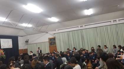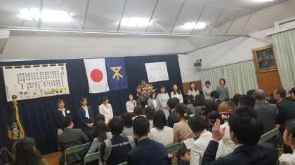 新しいお友だちを迎え、在園児が元気にお祝いの言葉と歌を披露しました。