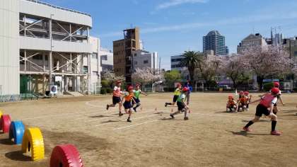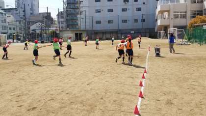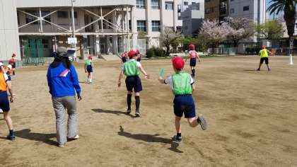 6年1組の体育の様子です。運動会に向けて?リレーの練習です。気温は19度で汗ばむ陽気の中、子どもたちは元気に練習していました。
