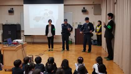 警察の方からは「ひとりではあそびません。」などの約束について、区役所の方からは安全のすごすルールなどを学習しました。しっかりと聞くことができていました。